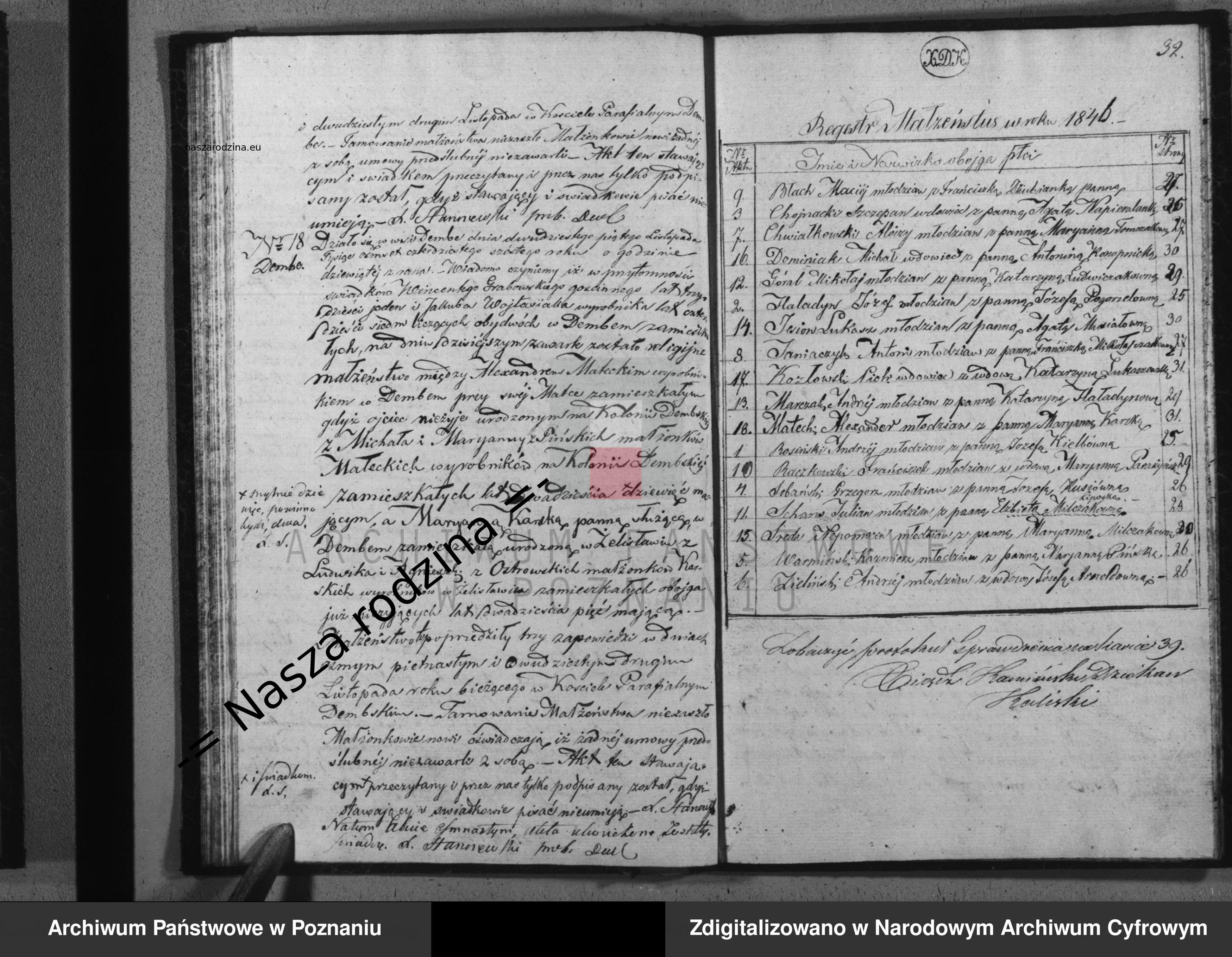| Ślub | Aleksander Maławski alias Małecki h. Pomian — Zobacz rodzinę 25 listopada 1846 (Wiek 23 lata) Źródło: Dębe - Księgi USC - 1846 |