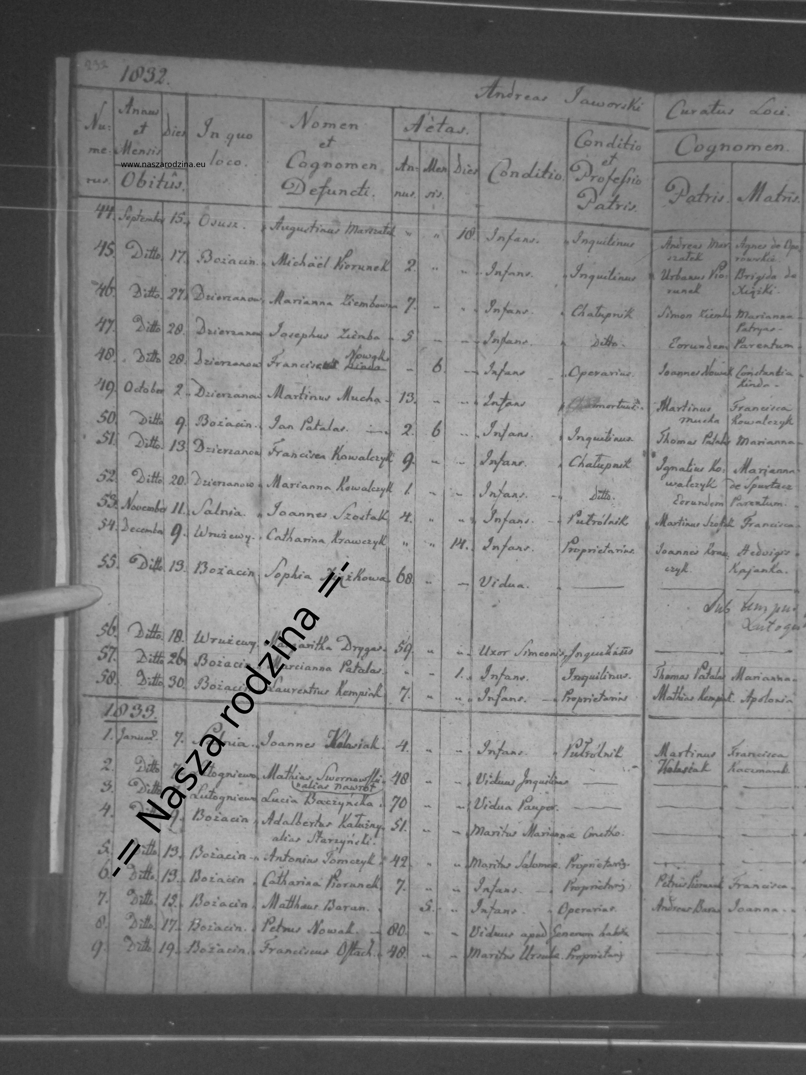Piotr Nowak vel Karczmarek Śmierć: 17 stycznia 1833 — Bożacin, krotoszyński, wielkopolskie, Poland |