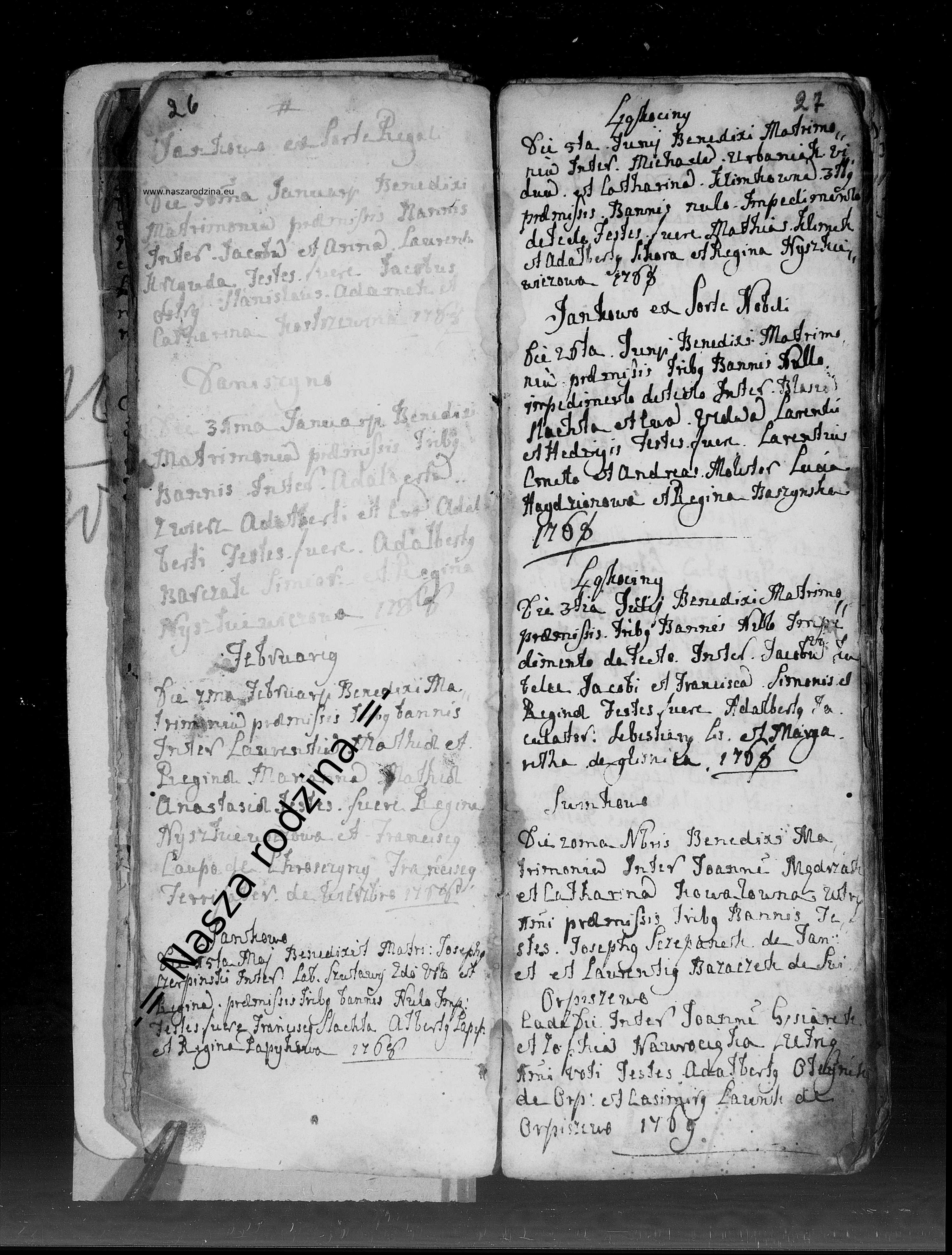 | Ślub kościelny | Jan Gęsiarek — Zobacz rodzinę 1769 Notatka: Ślub z 1769 zanotowany w ciągu akt z 1768 roku.