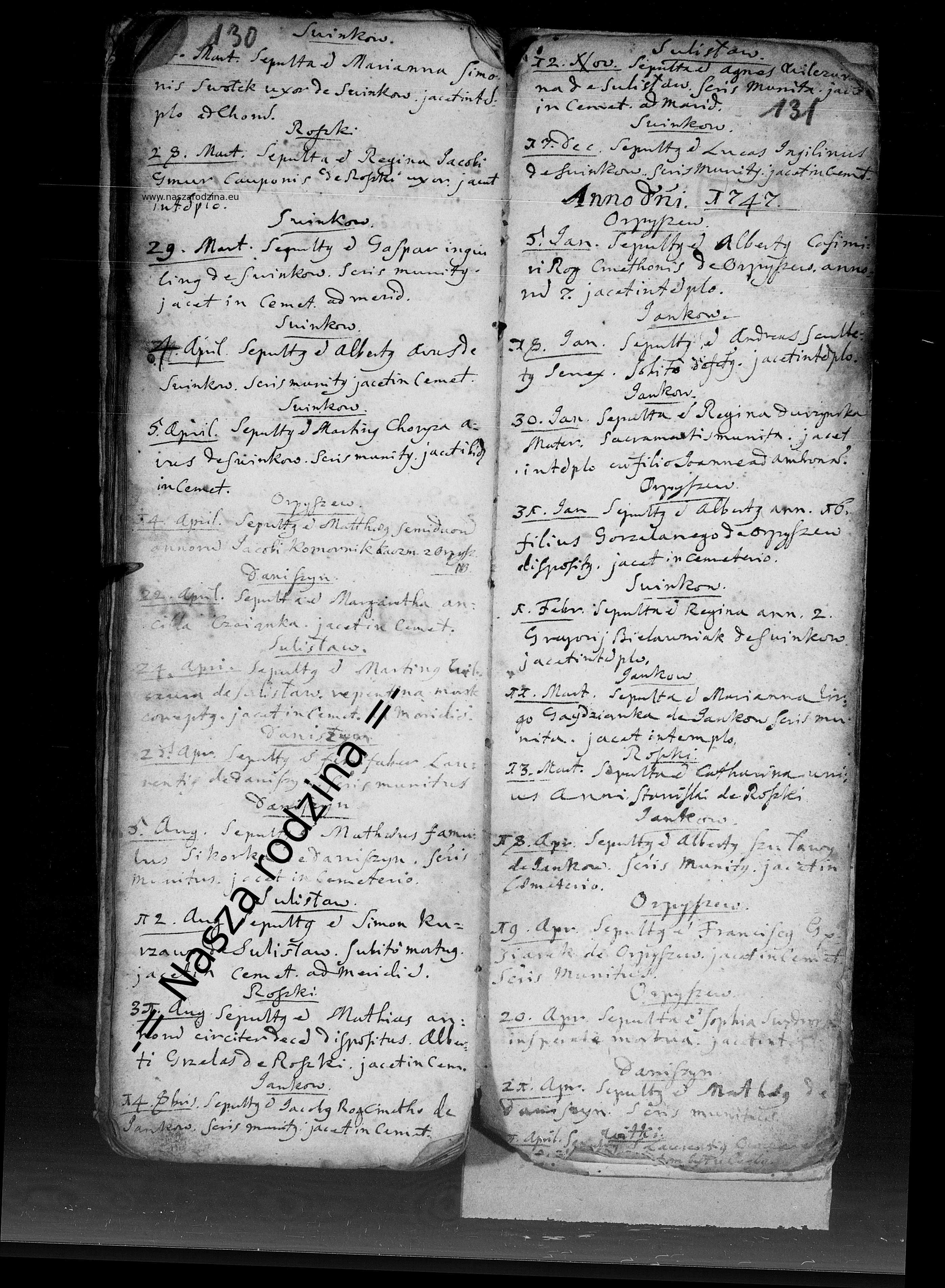 | Śmierć | Janków Zaleśny - Księgi metrykalne - Zgony - 1722-1748 Tekst: Sepultua Franciscus Gęsiarek de Orpyszew... |